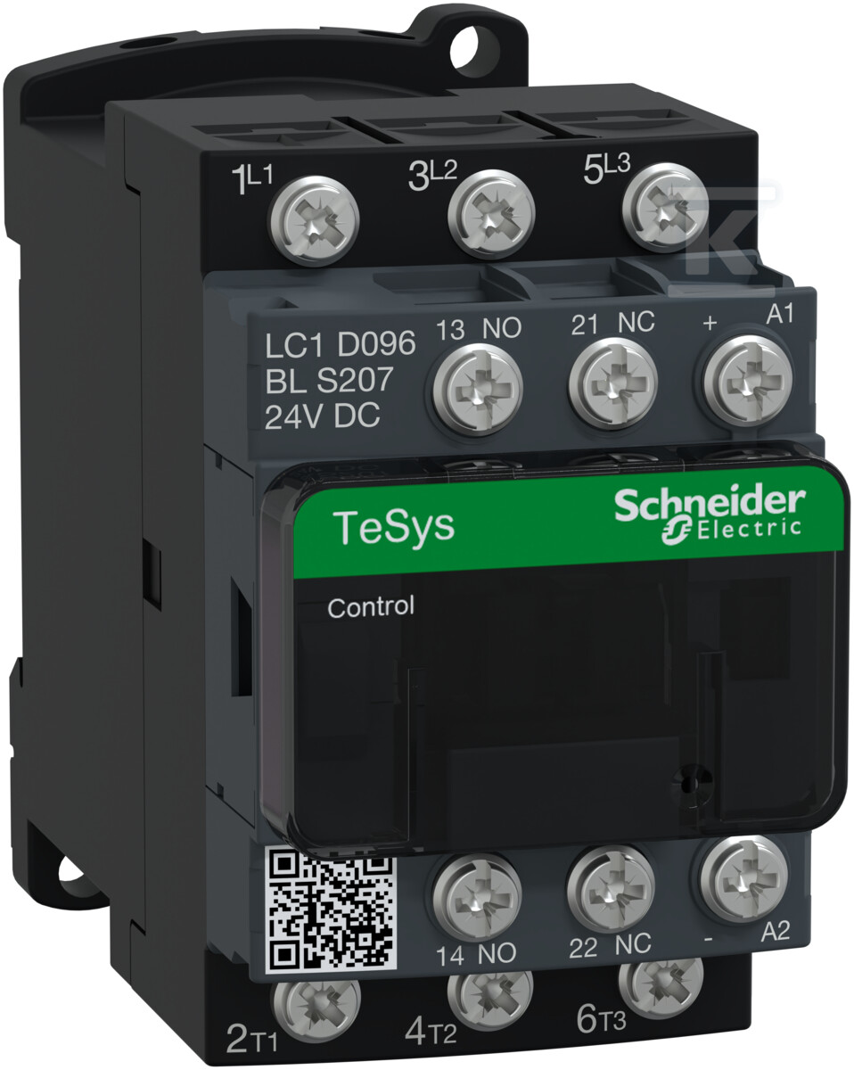 Потужний контактор TeSys D AC3 9A 3P 1NO 1NC рейковий, котушка 24VDC з низьким споживанням LC1D096BLS207