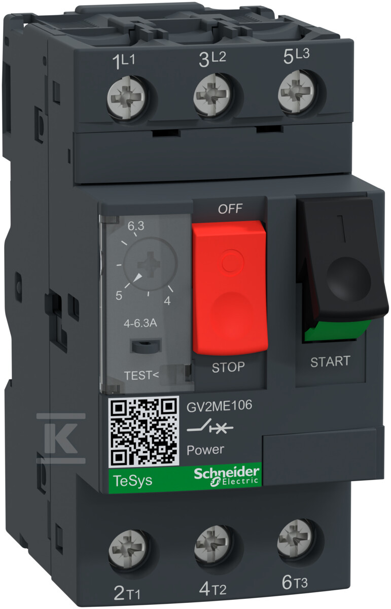 Вимикач двигуна GV2ME привід кнопковий 4-6,3A гвинтові затискачі GV2ME106