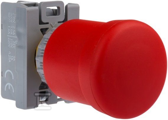 Ця кнопка є моделлю без самоповернення, що означає, що після натискання залишається в закритому положенні до моменту повторного звільнення. Її грибоподібна форма забезпечує легке та інтуїтивно зрозуміле керування, а гвинтове з'єднання дозволяє швидко та безпечно монтувати проводи. Має один розривний контакт (1NO), що робить її ідеальною для застосувань, які вимагають негайного розриву ланцюга в аварійній ситуації. Завдяки цьому монтажники можуть легко інтегрувати її з існуючими системами безпеки.