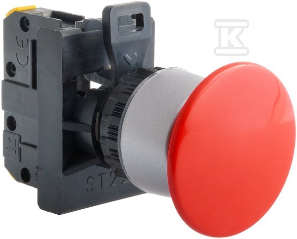 Кнопка грибоподібна червона 2 розрив, нікельоване кільце ST22-DC-02. ST22-DC-02\.