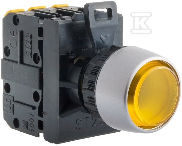 Кнопка виступаюча підсвічена жовта 2 з/в, кільце нікельоване ST22-WLG-20-230-BA9S. ST22-WLG-20-230-BA9S\.