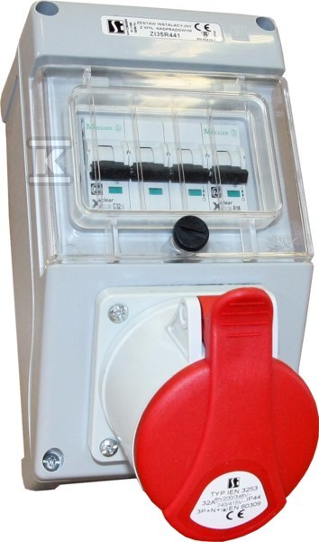 Комплект для монтажу з автоматичним вимикачем IP 44 16 A 3P+N+PE, праве бічне гніздо, кабельний ввід M25 ZI33\R211