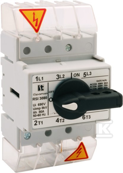 Роз'єднувач ізолюючий 3-полюсний +N (нероз'ємний) 80 A з ручкою на роз'єднувачі RSI-3080N\W02