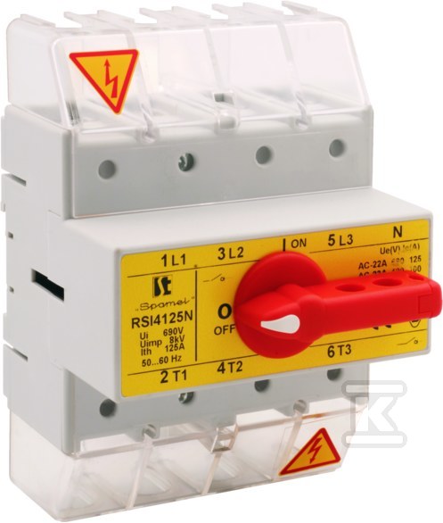 Роз'єднувач ізолюючий 6-полюсний +N (нероз'ємний) 125 A з ручкою на роз'єднувачі жовто-ЧЕРВОНИЙ. RSI-6125N\W03