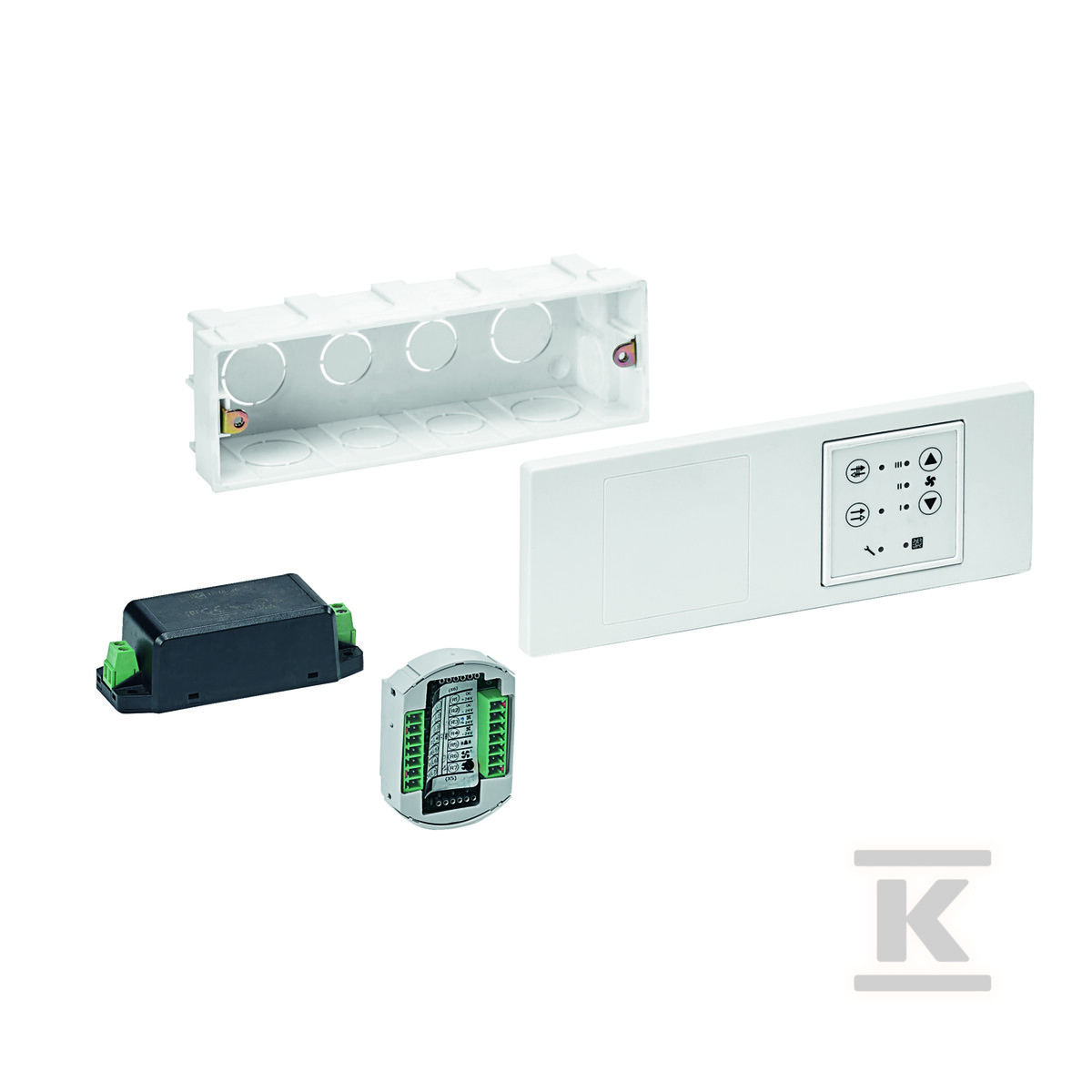 Ключовим елементом комплекту є модуль керування, оснащений світлодіодом (LED). Ця практична функція нагадує про необхідність регулярного очищення або заміни фільтра, що безпосередньо впливає на підтримку оптимальної якості повітря в приміщенні та продовження терміну служби пристрою. Вказівка запускається на основі часу роботи пристрою, тому не потрібно самостійно контролювати стан фільтра. Блок живлення, пристосований до монтажу на шині, полегшує інтеграцію з існуючою електричною інфраструктурою.