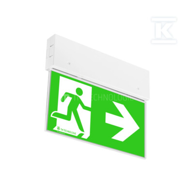 Монтаж світильника простий і швидкий – його можна встановити паралельно або перпендикулярно до стіни, а також вбудовувати, накладним способом або підвішувати на стелі. Завдяки цьому він ідеально адаптується до різних інтер'єрних рішень. Призначений для використання як вкладення для маркування шляху евакуації, що робить його ключовим елементом систем пожежної безпеки. Його компактні розміри (251 мм довжини, 29 мм ширини та 69 мм висоти/глибини) дозволяють дискретно інтегрувати його в архітектуру будівлі. Клас захисту II додатково підвищує безпеку використання.