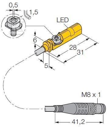 BIM-UNT-AP7X-0,3-PSG3M Магнітоіндуктивний датчик для приводів T-slot, PNP NO з кабелем 0,3 м, роз'ємом M8 4685747