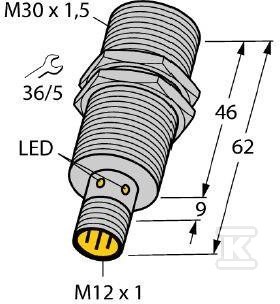 Bi15-M30-VP6X-H1141 Індуктивний датчик M30 PNP, NO/NC діапазон 15 мм з роз'ємом M12 4590718