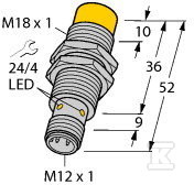 Індуктивний датчик, корпус M18, вихід PNP, діапазон Н.О. 14 мм з роз'ємом M12 типу NI14-M18-AP6X-H1141 4611400