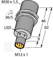 Індуктивний датчик із розширеним діапазоном виявлення Трубне різьбове з'єднання M30 × 1,5 Латунь хромована великий діапазон виявлення 3-провідний постійний струм, 10… 30 В постійного струму Вихід PNP NO Роз'єм M12 x 1