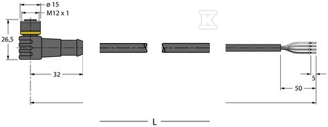 WKC4.4T-10/TXL Кабель PUR 4-жильний, 10 м M12 гніздо, кутовий 6625517