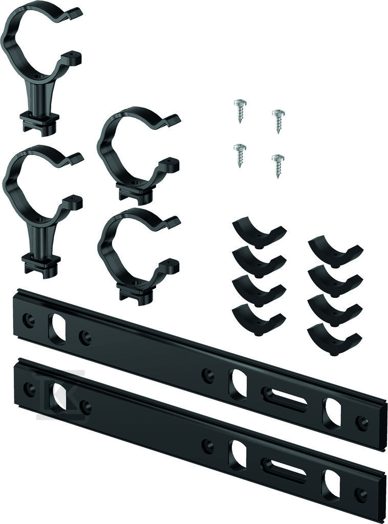 Тримач розроблений з урахуванням комплексних водонепроникних інсталяцій, що відповідають суворим нормам NT VVS 129. Він дозволяє монтувати розподільники з пластику в шафах, створюючи систему, стійку до пошкоджень, спричинених витоком води. Може використовуватися у всіх типах розподільчих інсталяцій – як у нових будівлях, так і під час модернізації існуючих систем. Варто пам'ятати, що дверцята та рамки до шафи необхідно замовляти окремо.