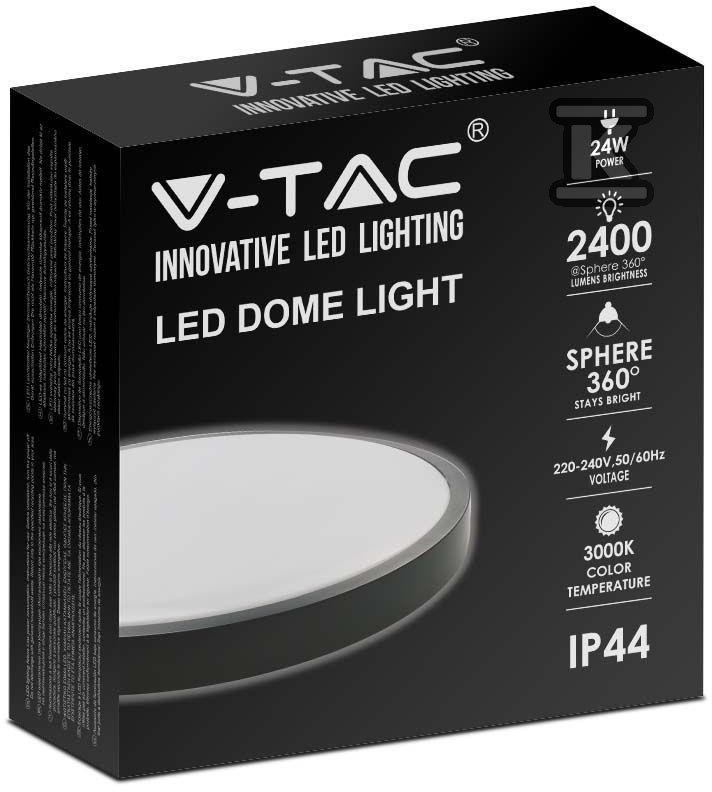 Стельовий світильник V-TAC 24W LED Круглий IP44 30cm Чорний VT-8624B-RD 4000K 2400lm 7637