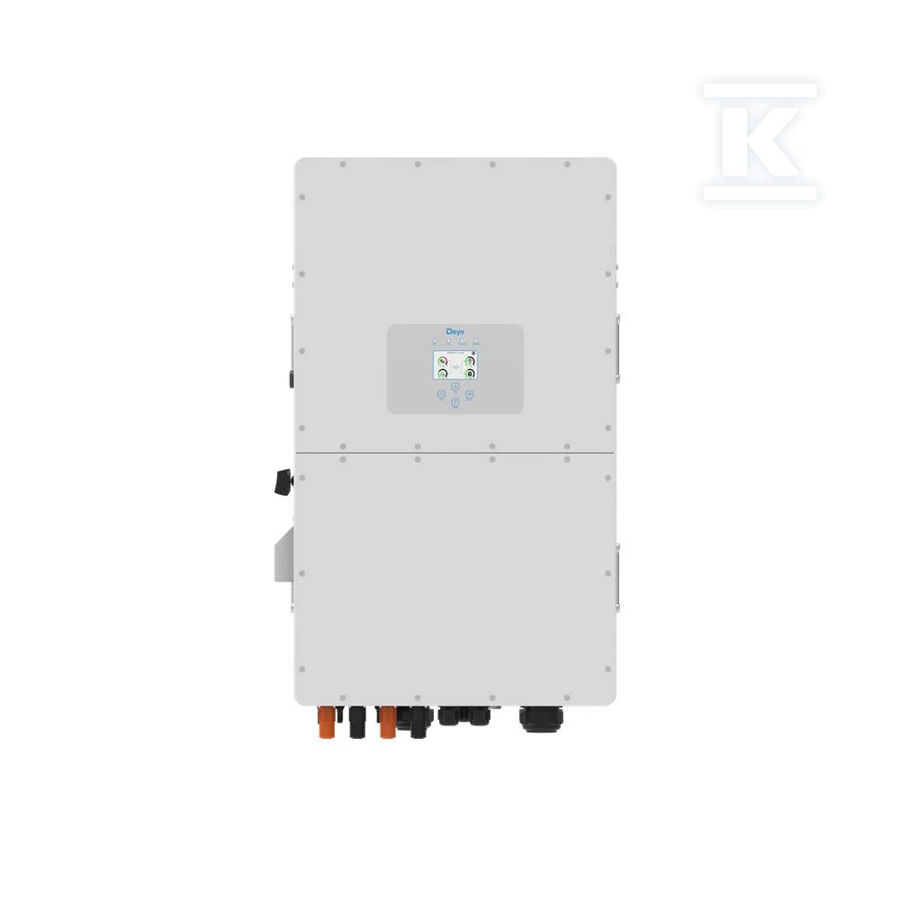 Інвертор характеризується міцною конструкцією (клас герметичності IP65) стійкою до атмосферних умов (-40°C до +60°C). Інтуїтивно зрозумілий кольоровий сенсорний екран полегшує конфігурацію та моніторинг параметрів роботи пристрою. Співпраця з додатками DEYE та SOLARMAN дозволяє віддалений доступ до даних та повний контроль над системою.