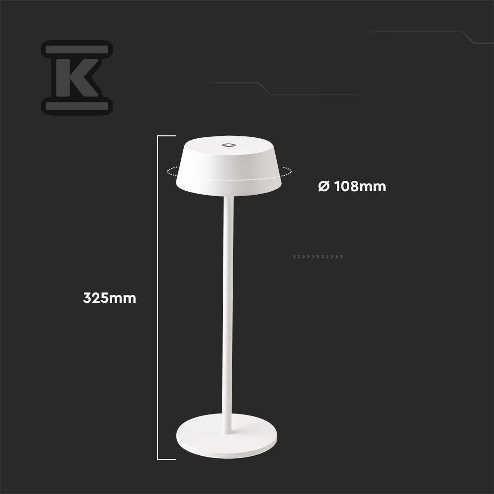 Настільна нічна лампа V-TAC 2W LED Заряджання, димування, IP54 Біла VT-7562 3000K 200lm 7689