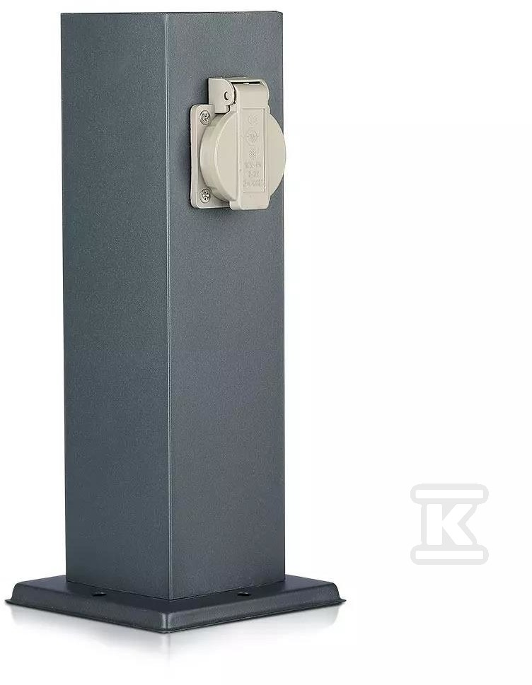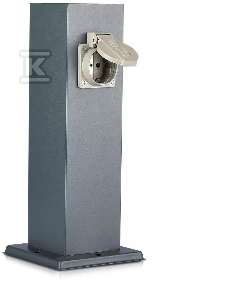 Стовпчик має висоту 30 см і квадратну форму (127x300мм), що полегшує його монтаж та інтеграцію з навколишнім середовищем. Виготовлений з міцної нержавіючої сталі в графітовому кольорі, виглядає сучасно та непомітно. Завдяки цьому він пасує до різних стилів ландшафтного дизайну. Гарантія виробника становить 2 роки, що свідчить про його довіру до продукту. Монтаж простий та інтуїтивно зрозумілий – достатньо прикріпити стовпчик до підлоги згідно з інструкцією. Пам'ятайте, однак, що монтаж повинен виконати кваліфікований електрик!