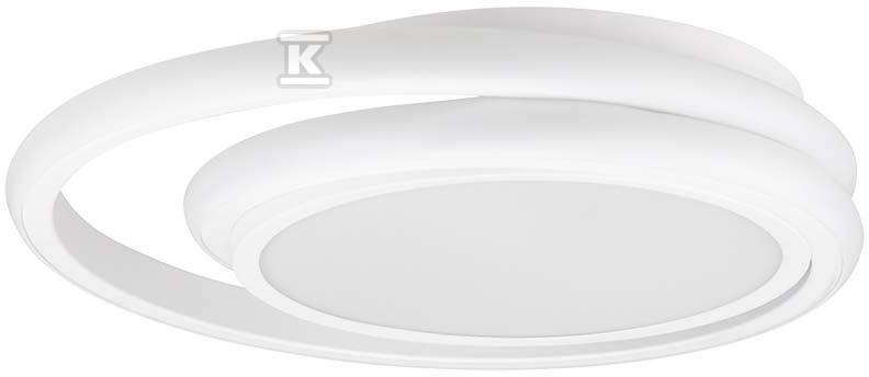Лампа має круглу форму розміром 465x60 мм, що полегшує її адаптацію до різноманітних інтер'єрних рішень. Виготовлена з високоякісного алюмінію, забезпечує довговічність і стійкість до пошкоджень. Клас захисту IP20 означає, що вона захищена від дотику, що робить її безпечною у використанні. Монтаж простий та інтуїтивно зрозумілий – лампа призначена для безпосереднього монтажу на стелю.