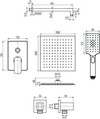 Набір для душу CARRE BLACK прихований монтаж 2448850