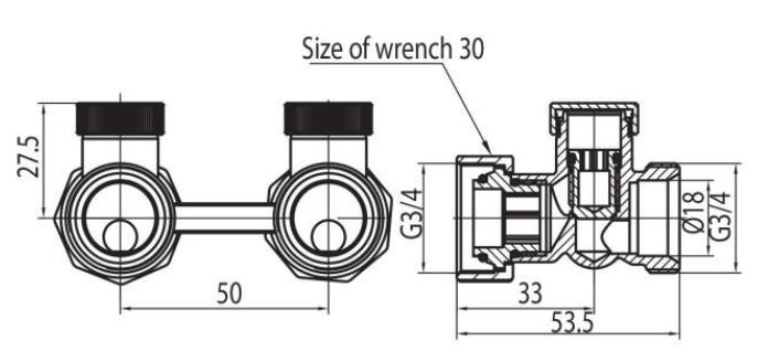 Комплект поєднує в собі міцність виготовлення та точність дії, що перекладається на довготривалу надійність. Сумісність з термостатичними вставками розміром 30x1,5 відкриває широкі можливості конфігурації, а шкала регулювання 0-5 дозволяє точно встановити бажану температуру. Клапани VKO в комплекті полегшують монтаж до радіаторів з виходом 3/4'', завдяки двом втулкам, що додаються.