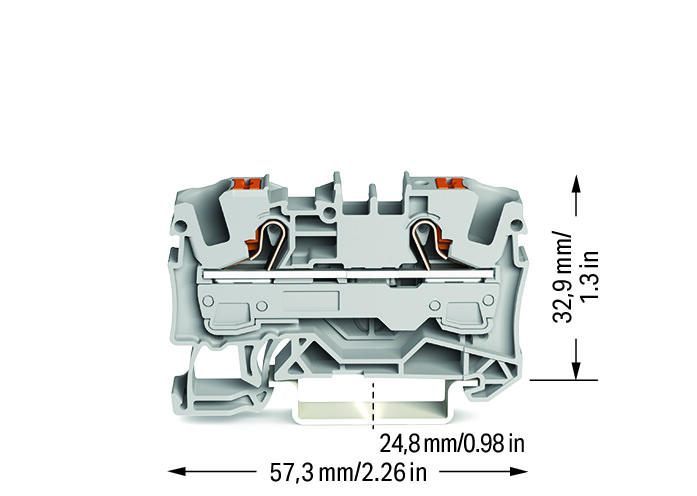 Перехідна з'єднувальна клема 2-провідна, з кнопками, 6 мм², з вимірювальним отвором, маркування збоку та посередині, для шини TS 35 x 15 і 35 x 7,5, Push-in CAGE CLAMP®, 6,00 мм², сірий 2206-1201