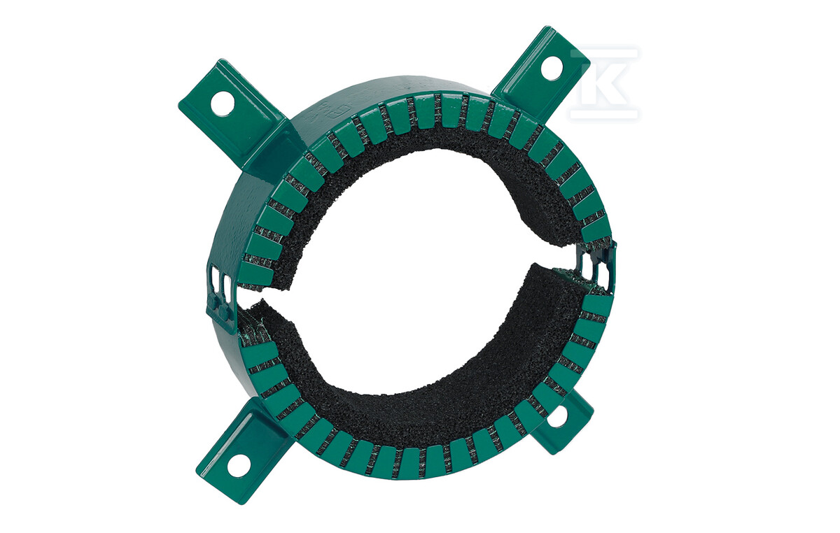 Конструкція хомута базується на сталевій обіймаці, оцинкованій і пофарбованій порошковим покриттям – це гарантія довговічності та стійкості до корозії. Модульна конструкція полегшує встановлення, а наявність піни EPDM забезпечує краще прилягання до труби. Крім того, тиснене логотипу бренду на обіймаці підтверджує автентичність продукту. Хомут не тільки забезпечує пожежну безпеку, але й може сприяти зниженню передачі шуму в будівлі.