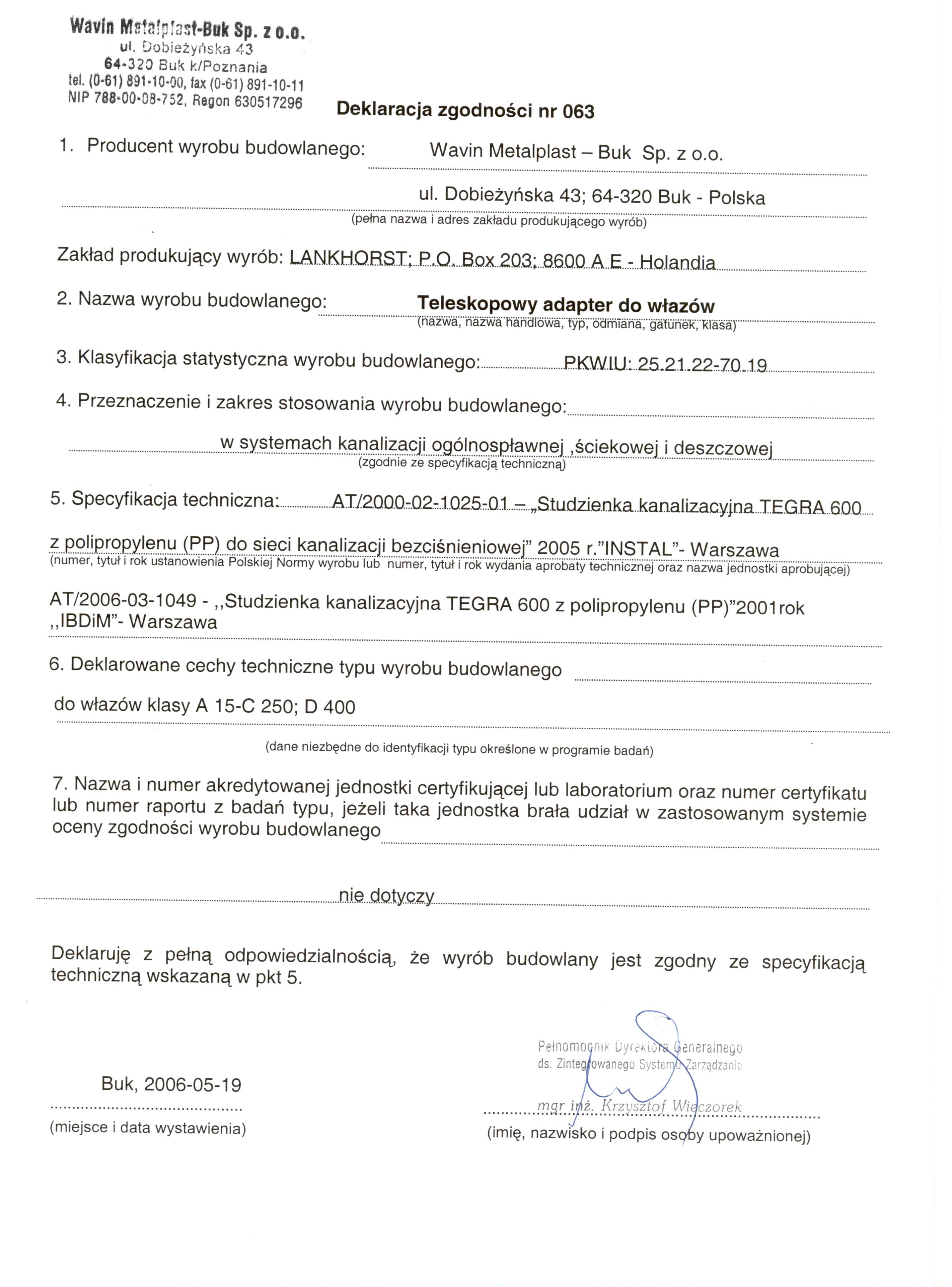 Перехідник телескопічний люк D400 4000649