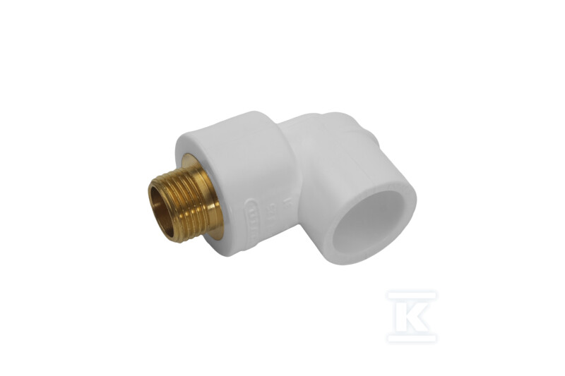 Коліно характеризується зварним/спаяним з'єднанням з одного боку та зовнішньою метричною різьбою з іншого. Виготовлене з PP-R забезпечує довговічність та стійкість до корозії, а латунна різьба гарантує герметичність з'єднання. Застосування коліна з різьбою особливо корисне там, де потрібне з'єднання елементів різних діаметрів або матеріалів – наприклад, при підключенні клапанів, редукторів тиску чи іншої арматури. Завдяки цьому рішенню інсталятор має більшу гнучкість у проєктуванні та реалізації інсталяції.