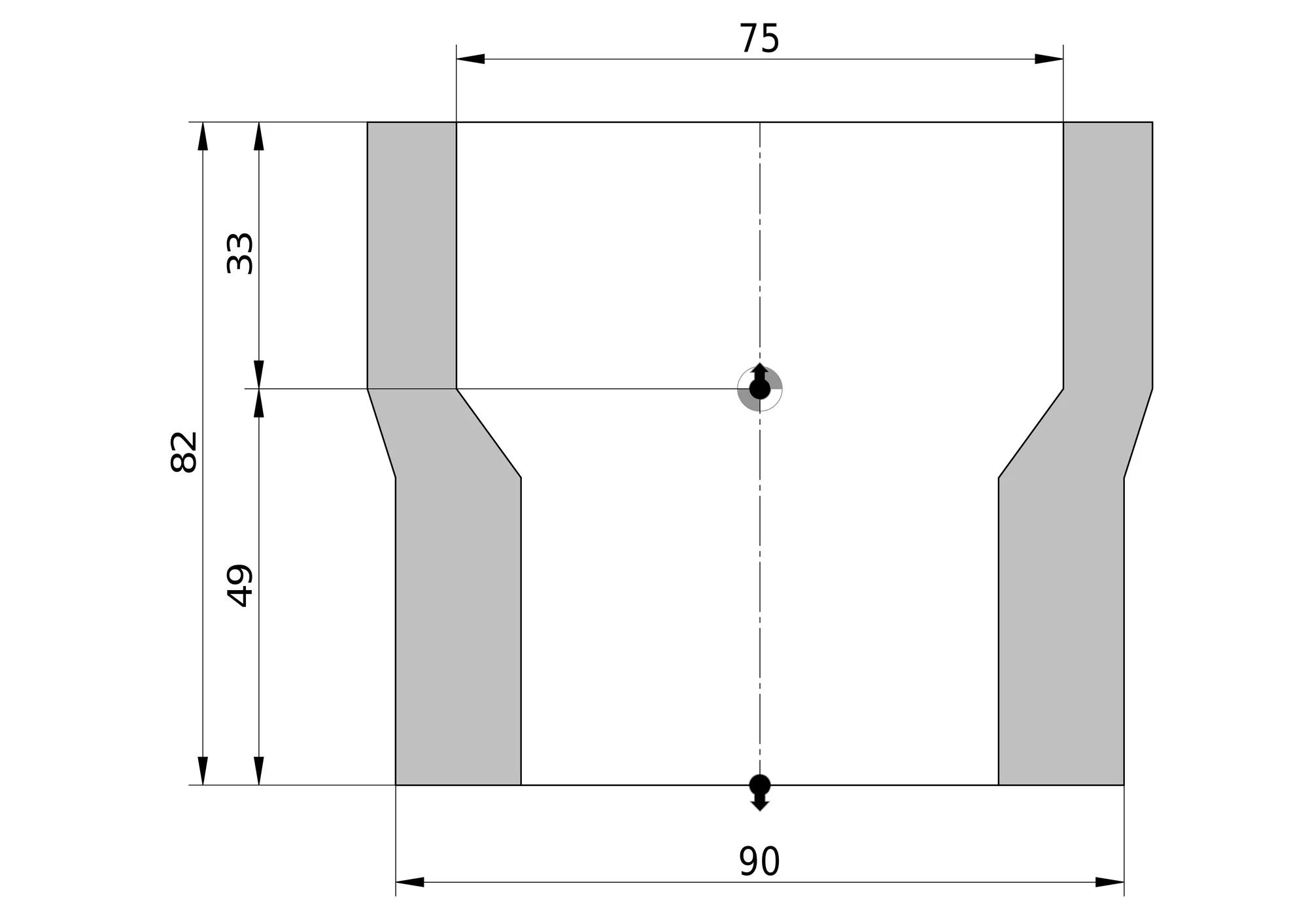 - Розміри: Зовнішній діаметр труби з'єднання 1 становить 90 мм, а з'єднання 2 – 97 мм; довжина зменшення становить 82 мм.