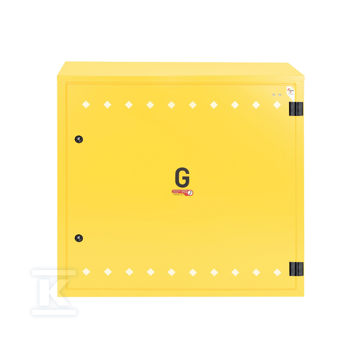 Міцна конструкція з металу гарантує довготривалий захист газового лічильника, навіть у складних зовнішніх умовах. Жовтий колір підвищує видимість шафи, що полегшує її локалізацію за потреби. Похилий дах мінімізує накопичення води на поверхні, запобігаючи корозії та пошкодженню внутрішніх елементів.