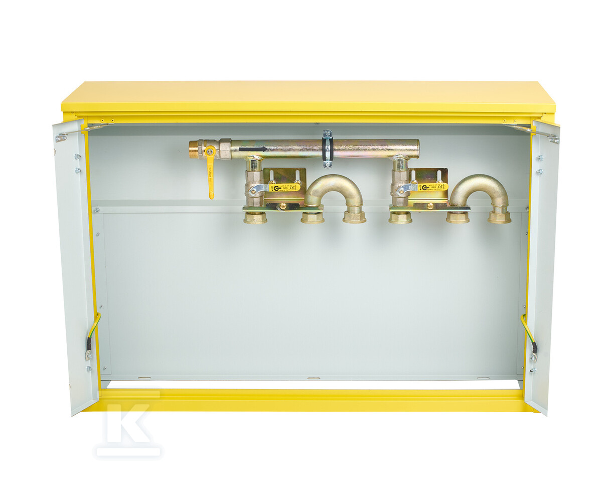 Вимірювально-редукційна точка для 2 лічильників газу G4/G6, горизонтальна, в металевій коробці 1050х700х250 - жовта 07-10-0011-41