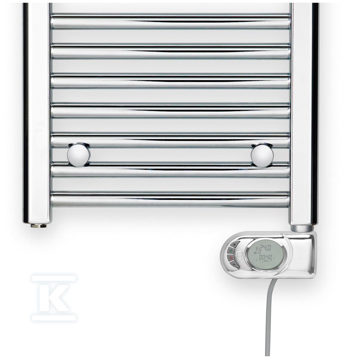 Ця модель, з хромованим покриттям, не лише ідеально виглядає у ванній кімнаті, але й забезпечує ефективне опалення. Обладнана інтуїтивною панеллю керування з програмованим термостатом Musa, вона дозволяє точно встановити температуру та графік роботи. Функція «виявлення відкритого вікна» додатково підвищує енергоефективність, зменшуючи споживання енергії при спаді температури через провітрювання. Мала глибина встановлення робить радіатор придатним навіть для невеликих приміщень.