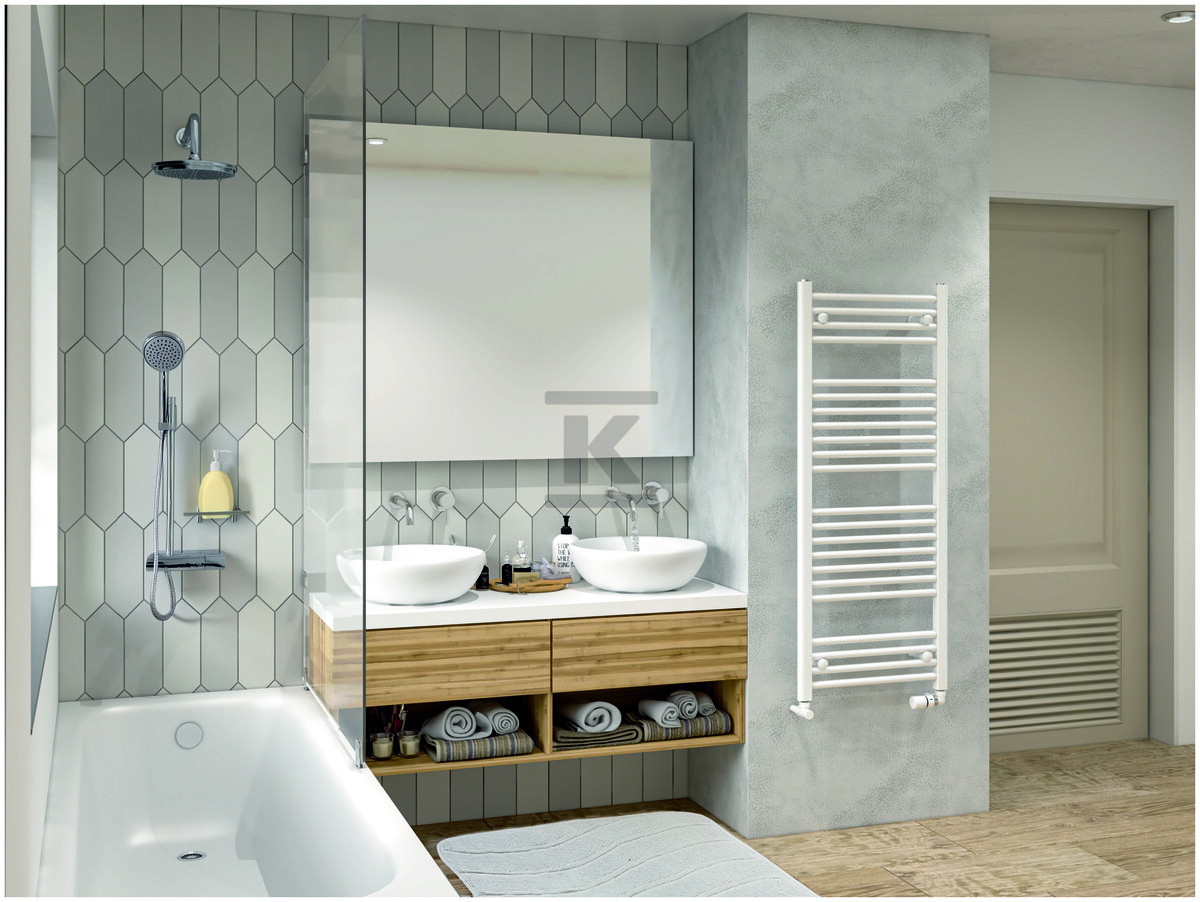 Конструкція радіатора була ретельно продумана з метою максимальної зручності користування. Вертикальні колектори діаметром 40x30 мм та круглі горизонтальні труби діаметром 22 мм забезпечують рівномірне розподілення тепла. Великі проміжки між трубами сприяють як легкому очищенню апарату, так і зручному підвішуванню рушників та інших тканин. У комплекті надаються всі необхідні елементи для монтажу, що спрощує встановлення.